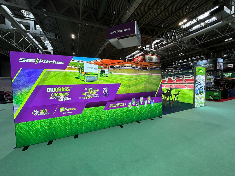 A joint venture for their clients' SIS Pitches, Premier Pitches and MJ Abbott, CityBrand designed, supplied and installed a visually striking exhibition build at Saltex NEC.